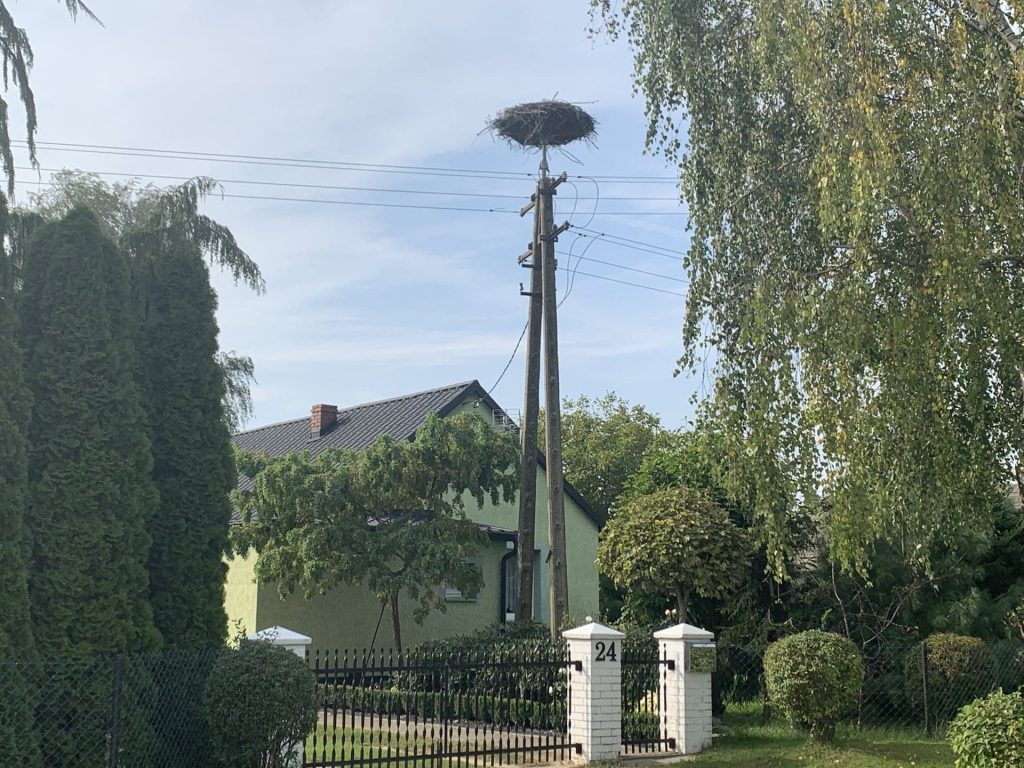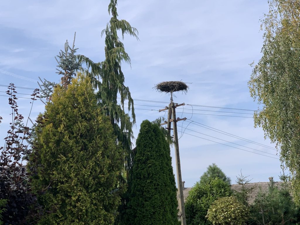 Bocianie gniazda znajdują się na dachach domów lub na słupach. Co roku od połowy kwietnia możemy tutaj spotkać kilkanaście bocianów.
