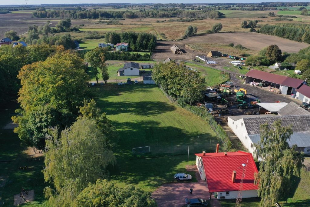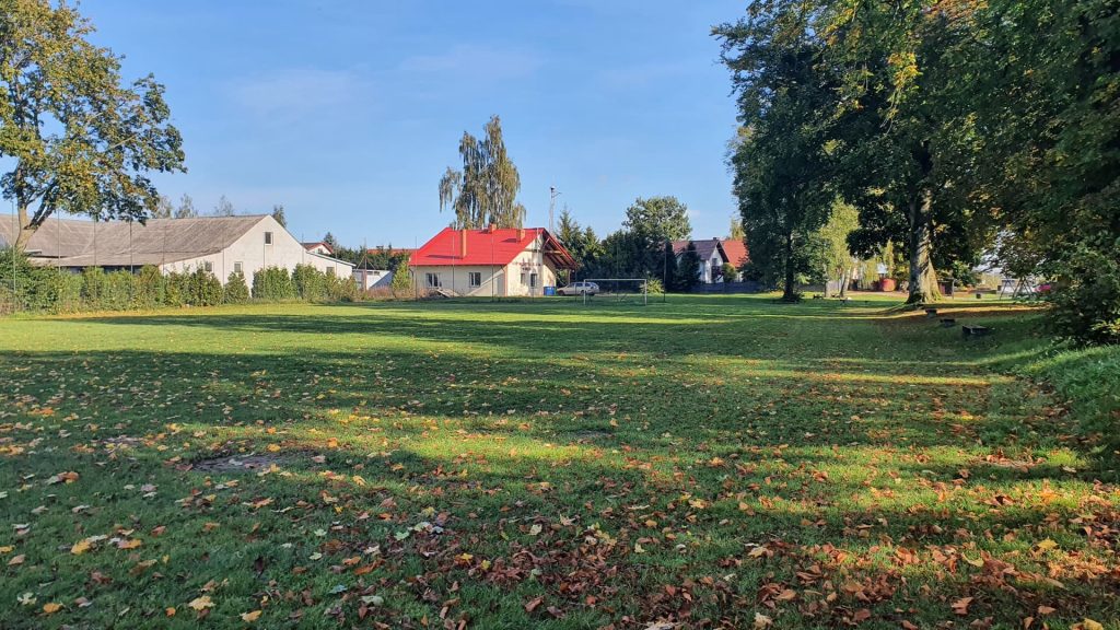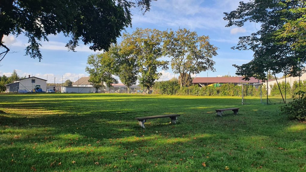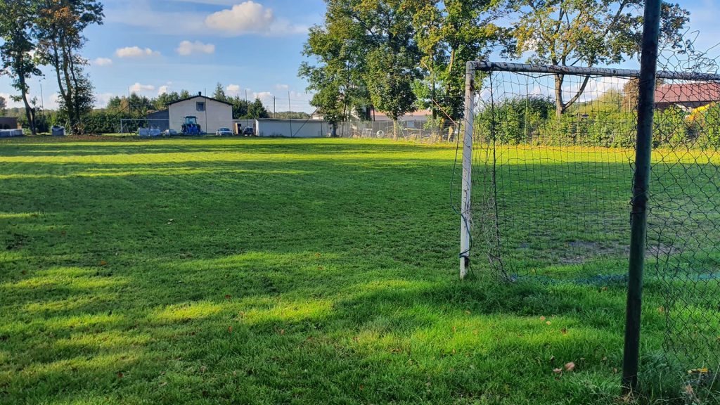 Trawiaste boisko do piłki nożnej położone w centrym wsi.