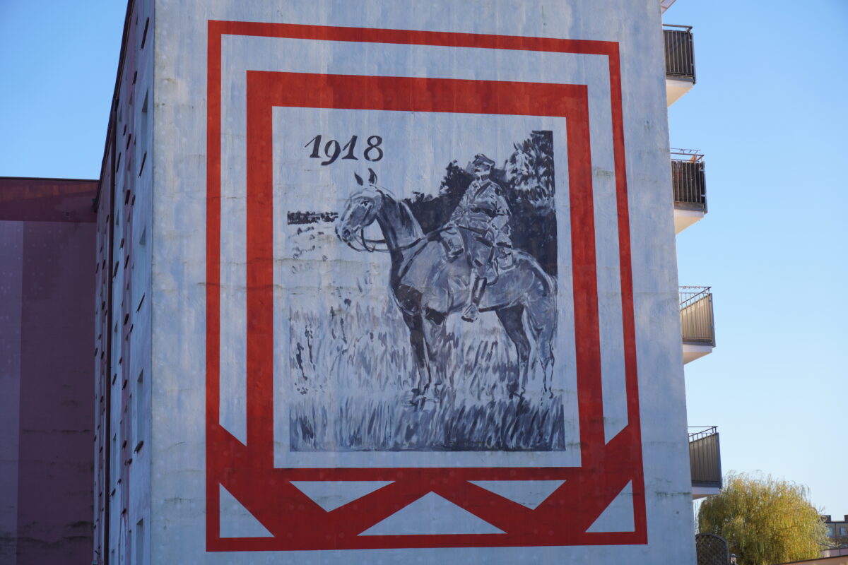 Malowidło nawiązuje do wydarzeń roku 1918, kiedy Polska odzyskała niepodległość, a Piłsudski stał się symbolem walki o wolność. Stylizowana kreska i skromna paleta barw przywołują ducha dawnych ilustracji i wojskowych pocztówek, nadając całemu przedstawieniu jeszcze silniejszy historyczny wydźwięk. Ten mural jest nie tylko dekoracją — pełni rolę miejskiego pomnika pamięci o ważnych wydarzeniach i ludziach, którzy tworzyli dzieje Polski.