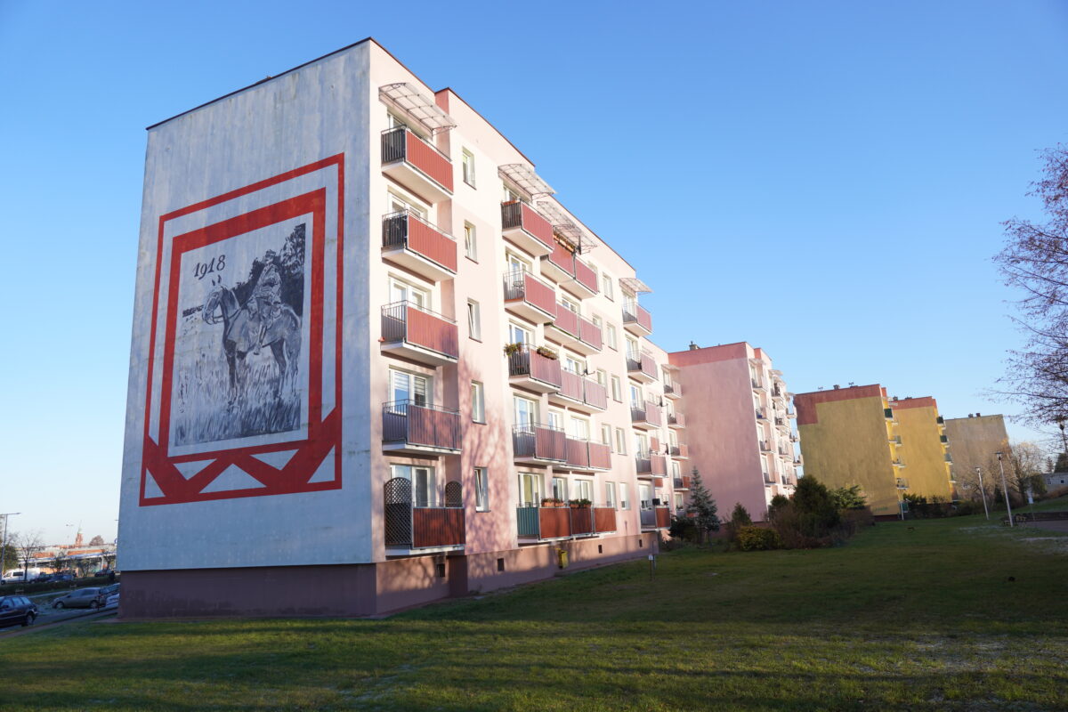 Na froncie bloku przy osiedlu 60-lecia 4B w Starogardzie Gdańskim znajduje się jeden z najbardziej rozpoznawalnych murali patriotycznych w mieście. Monumentalna postać Józefa Piłsudskiego na koniu, inspirowana malarstwem Wojciecha Kossaka, została przedstawiona w monochromatycznym stylu i obramowana czerwoną linią, która symbolicznie podkreśla barwy narodowe. To mural, który zatrzymuje wzrok od pierwszej chwili.