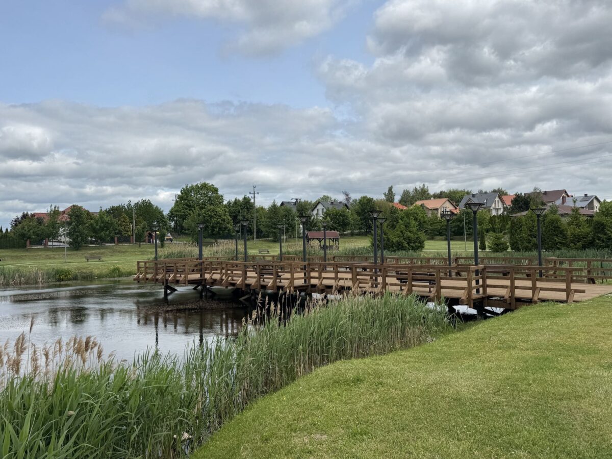 Miejsce powstało z myślą o mieszkańcach – wokół stawu ustawiono ławki, wiaty i pomost z oświetleniem. To lokalna przestrzeń do wypoczynku, bez większej historii, ale z klimatem.