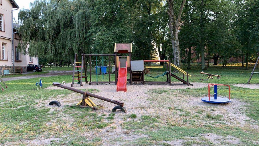 Plac zabaw położony w centrum wsi , niedaleko Pałacu Dworskiego.
