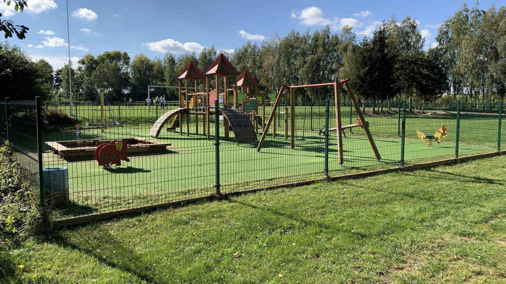 Bardzo rozbudowany i wyposażony plac zabaw dla dzieci z dostępem do huśtawek, piaskownicy, mostków oraz małych ścian wspinaczkowych. Obiekt mieści się niedaleko szkoły podstawowej przy boisku piłkarskim.