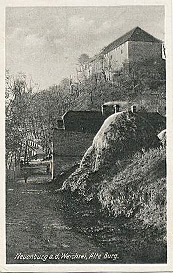 Zamek w Nowem nad Wisłą (dawnym Neuenburg) powstał w połowie XIV wieku, wzniesiony przez zakon krzyżacki na miejscu wcześniejszego, drewniano-ziemnego grodu pomorskiego. Według lokalnego podania pierwszy gród ufundował książę pomorski Grzymisław z pobliskiego Świecia, co podkreśla strategiczne znaczenie tego miejsca już przed przybyciem Krzyżaków. Budowę murowanej warowni rozpoczęto ok. 1350 roku, a prace trwały do ok. 1404 roku. Zamek został włączony w system miejskich fortyfikacji – równolegle otoczono miasto Nowe murami obronnymi z basztami i czterema bramami. Początkowo zamek pełnił funkcję siedziby prokuratora zakonnego podległego wójtowi w Tczewie. Składał się z głównego skrzydła wschodniego i prostopadle doń dobudowanego skrzydła północnego o charakterze gospodarczym, otaczających niewielki dziedziniec; całość uzupełniały mury obwodowe z bramą od strony miasta oraz cztery wieże w narożach założenia.