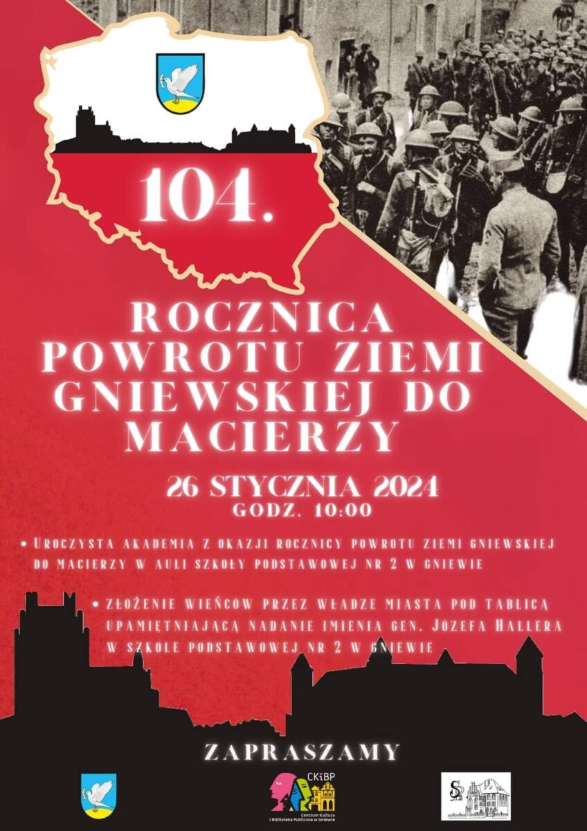 🌟🎉 Serdecznie zapraszamy do udziału w uroczystych obchodach 104. Rocznicy Powrotu Ziemi Gniewskiej do Macierzy! 🥳🎈