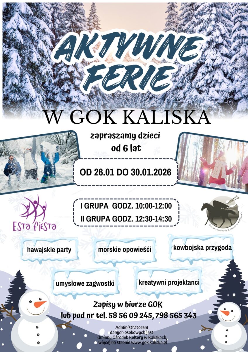 👧🧒 AKTYWNE FERIE w GOK Kaliska to świetna okazja, by dzieci spędziły ferie twórczo, w ruchu i w gronie rówieśników.