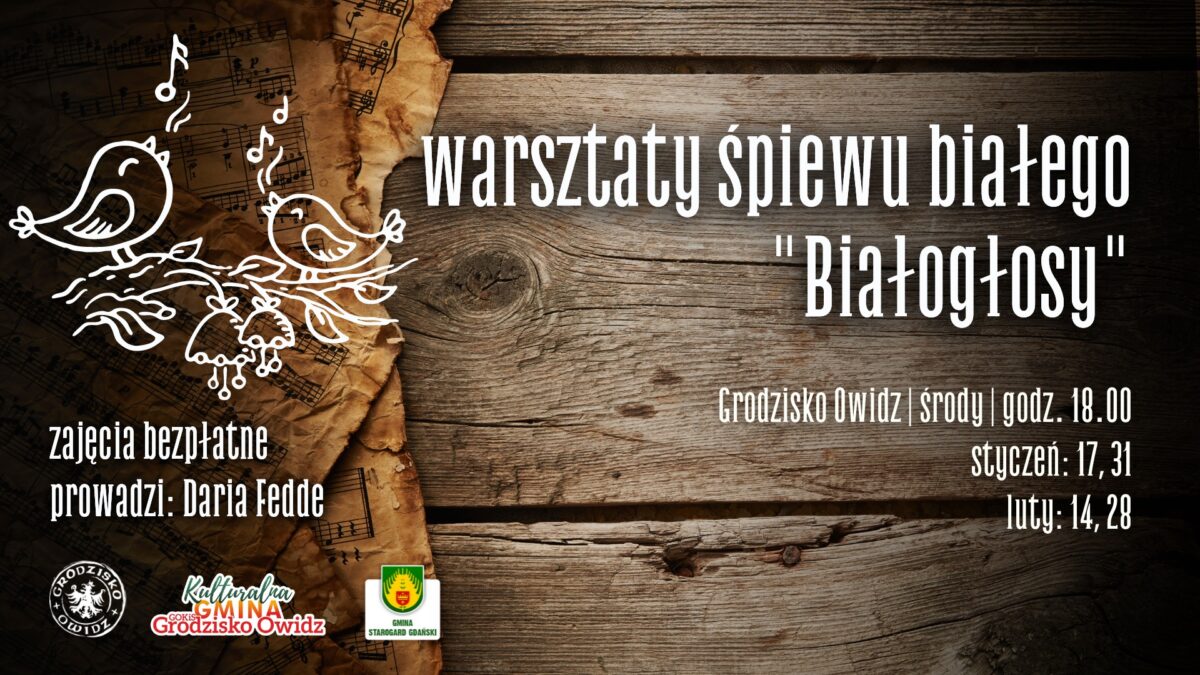 Zapraszamy serdecznie do Grodziska Owidz na wyjątkowe warsztaty śpiewu tradycyjnego “Białogłosy”. Podczas tych spotkań, odbędą się następujące daty: 17 i 31 stycznia, oraz 14 i 28 lutego, zawsze o godzinie 18:00.