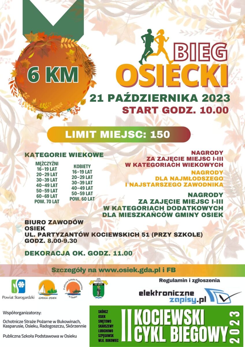 Dystans 6 km ulicami Osieka oraz drogami gruntowymi i leśnymi.