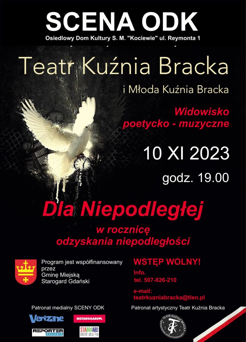 Teatr Kuźnia Bracka i Młoda Kuźnia z ODK zapraszają na widowisko poetycko – muzyczne w rocznicę odzyskania niepodległości!