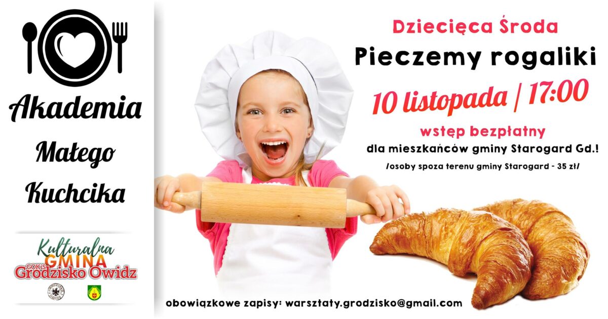 Dziecięca Środa to cykl bezpłatnych warsztatów dla mieszkańców gminy Starogard Gdański.Tym razem, 10 listopada, zapraszamy najmłodszych w wieku od 5 do 10 lat na Warsztaty Małego Kuchcika.