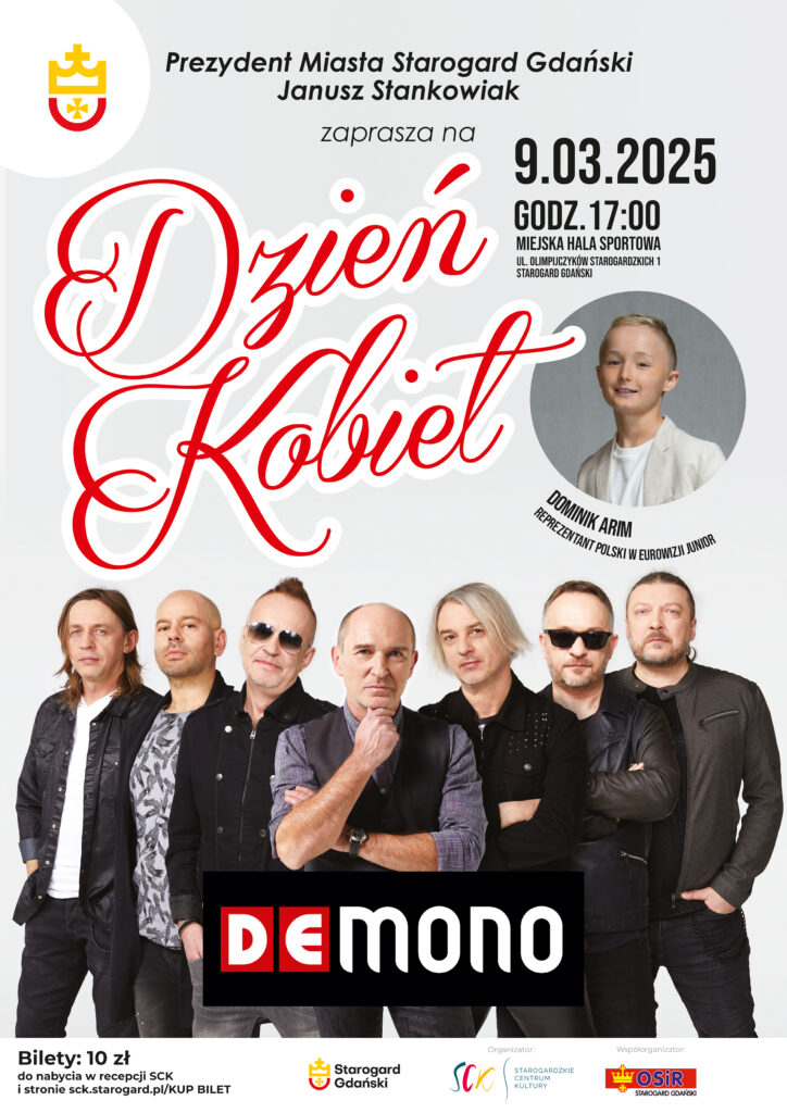 Już 9 marca 2025 r. (niedziela) o godzinie 17:00 w Miejskiej Hali Sportowej im. Andrzeja Grubby w Starogardzie Gdańskim wystąpią Dominik Arim oraz zespół De Mono. To wyjątkowe wydarzenie muzyczne, które dostarczy niezapomnianych emocji.