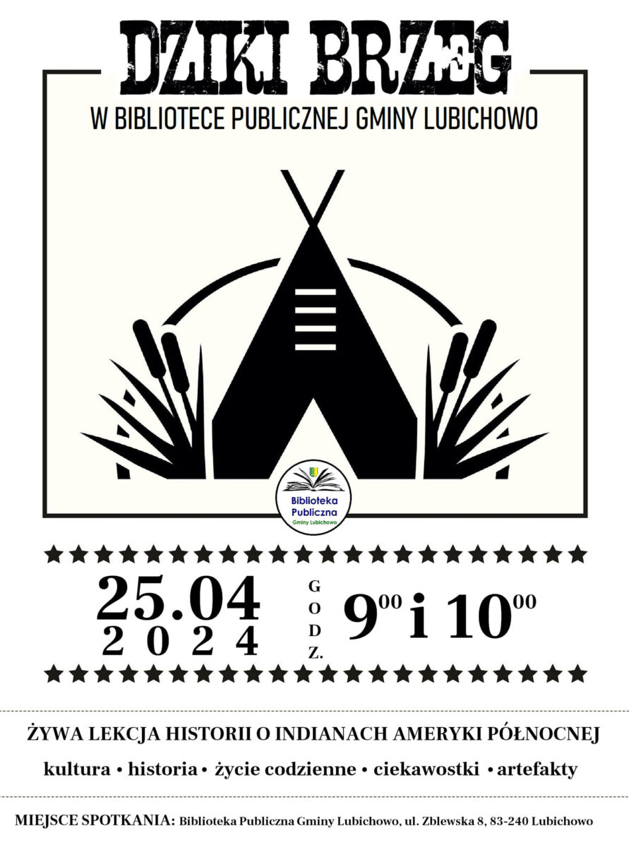🌾 Dzikuski i Dzikusy – tak często zwracają się do innych – to będzie COŚ nieprawdopodobnego! Nasza biblioteka ma zaszczyt zaprosić Was na niezwykłe spotkanie z twórcami Dzikiego Brzegu, którzy przybędą po raz pierwszy do Lubichowa z żywą lekcją historii Indian Ameryki Północnej.