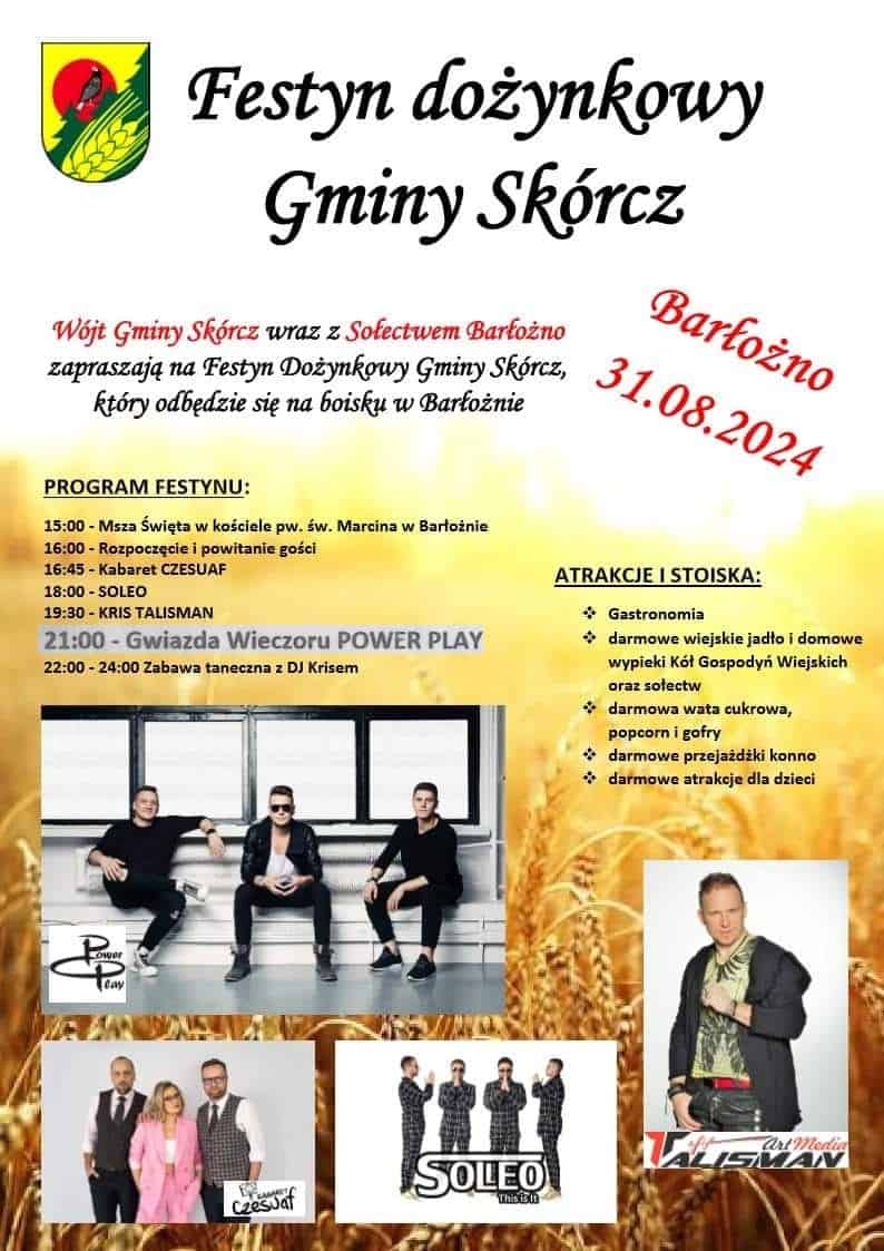 Wójt Gminy Skórcz wraz z Sołectwem Barłożno serdecznie zapraszają na Festyn Dożynkowy Gminy Skórcz!