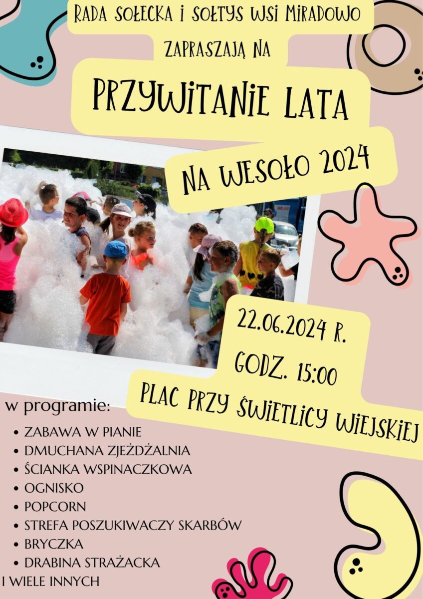 RADA SO艁ECKA I SO艁TYS WSI MIRADOWO serdecznie zapraszaj膮 na festyn PRZYWITANIE LATA NA WESO艁O 2024!