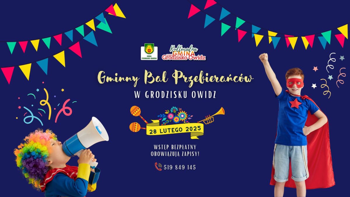 🎉 Gminny Ośrodek Kultury i Sportu Grodzisko Owidz zaprasza wszystkie dzieci z Gminy Starogard Gdański na wyjątkową zabawę karnawałową!