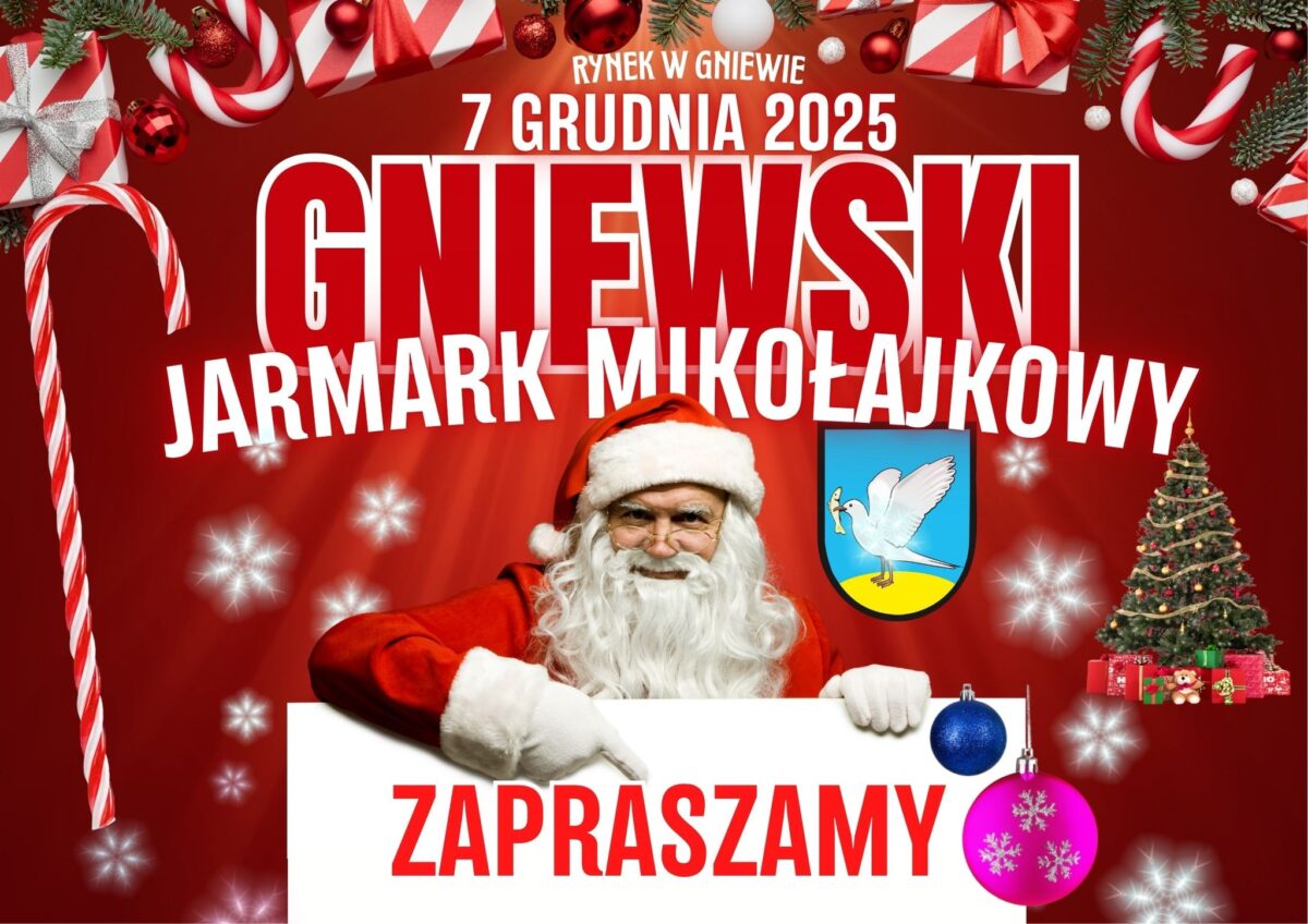 Serdecznie zapraszamy wszystkich mieszkańców i gości na Gniewski Jarmark Mikołajkowy, który wprowadzi nas w magiczny klimat zbliżających się Świąt Bożego Narodzenia!