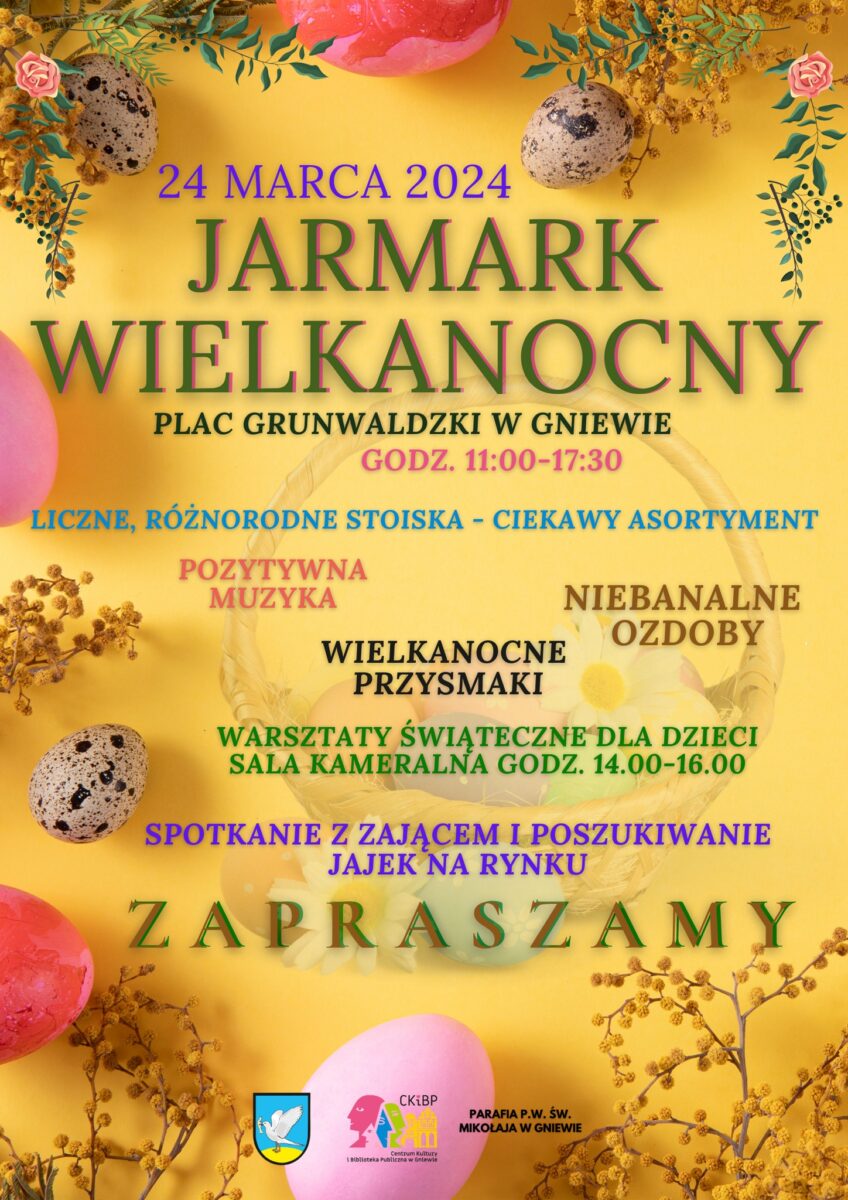 🔜 Już w tę sobotę, 24 marca 2024 r., serdecznie zapraszamy na Gniewski Jarmark Wielkanocny! 🐰🌼