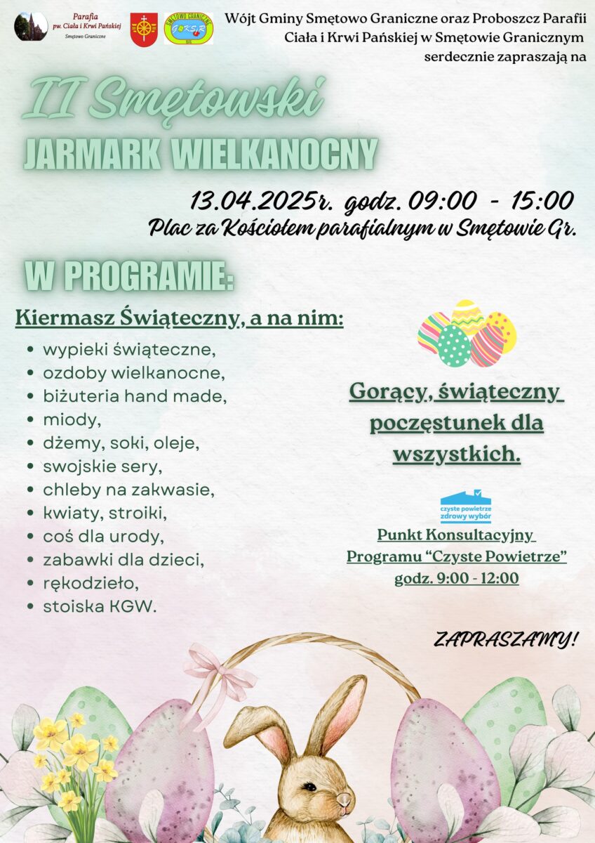 #SmętowoGraniczne #JarmarkWielkanocny #Wielkanoc2025 #GOKSiR #KGW #CzystePowietrze #Tradycja #Rękodzieło #LokalniTwórcy
