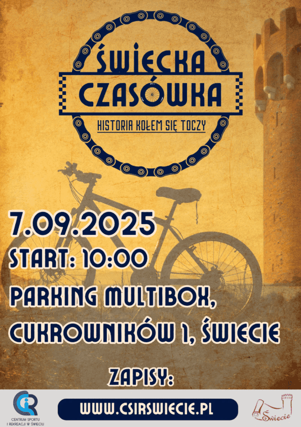 Gdzie i kiedy? 📍 Start i meta: parking przy Parku Handlowym MultiBox w Świeciu 📅 7 września 2025 r. (niedziela) ⏱ Rodzaj wyścigu: jazda indywidualna na czas 🚴 Długość trasy: 8,10 km