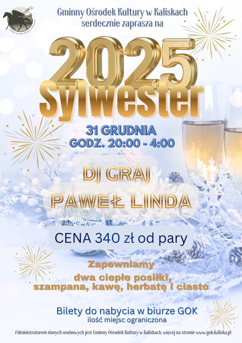 🎇 Gminny Ośrodek Kultury w Kaliskach serdecznie zaprasza na wyjątkowy Bal Sylwestrowy 2025!
