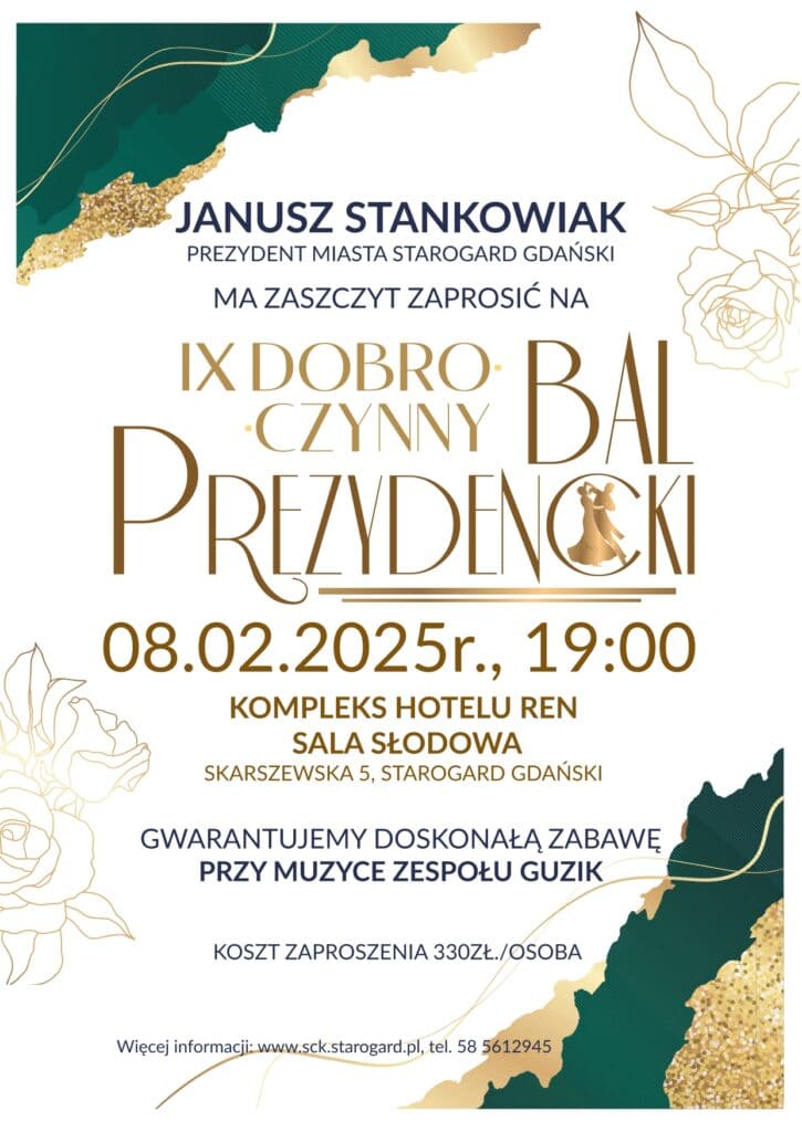 Już po raz dziewiąty Prezydent Miasta Starogard Gdański, Janusz Stankowiak, zaprasza na wyjątkowy wieczór, podczas którego elegancja, rozrywka i dobroczynność połączą się w jednym wydarzeniu.