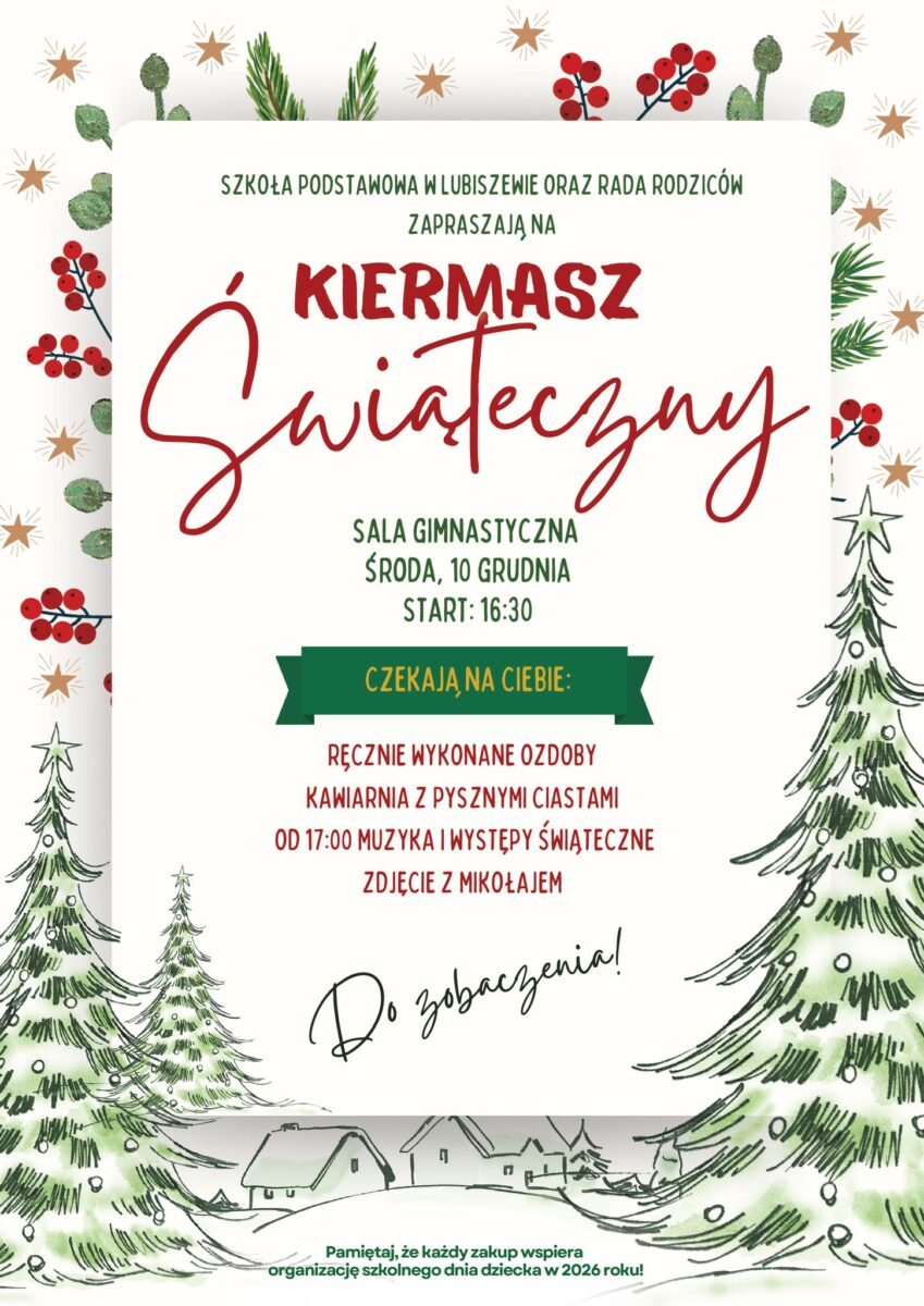 Szkoła Podstawowa w Lubiszewie wraz z Radą Rodziców zapraszają na wyjątkowy Kiermasz Świąteczny, który odbędzie się w środę, 10 grudnia w szkolnej sali gimnastycznej.