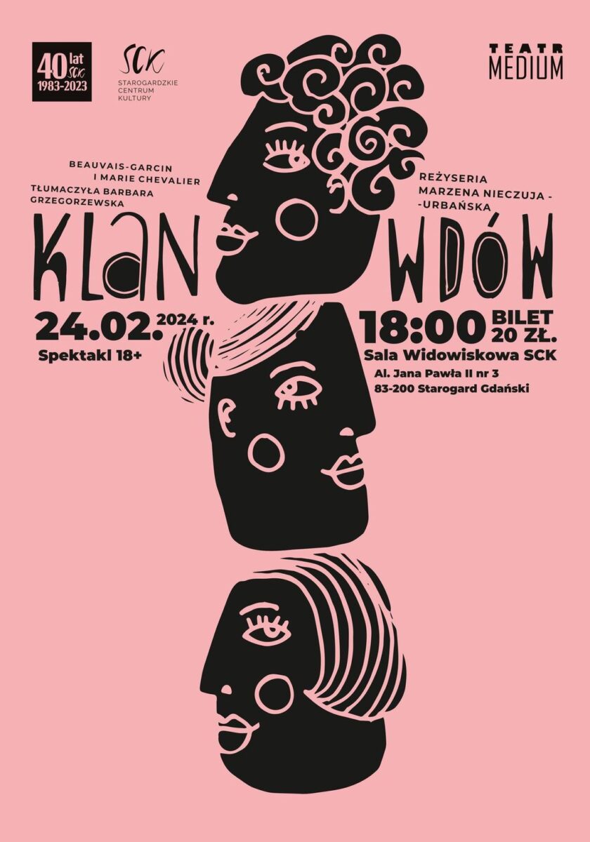 🎭✨ Teatr Medium i Starogardzkie Centrum Kultury serdecznie zapraszają na niezwykły spektakl pt. “Klan_wdów” autorstwa Ginette Beauvais-Garcin i Marie Chevalier, w przekładzie Barbary Grzegorzewskiej.