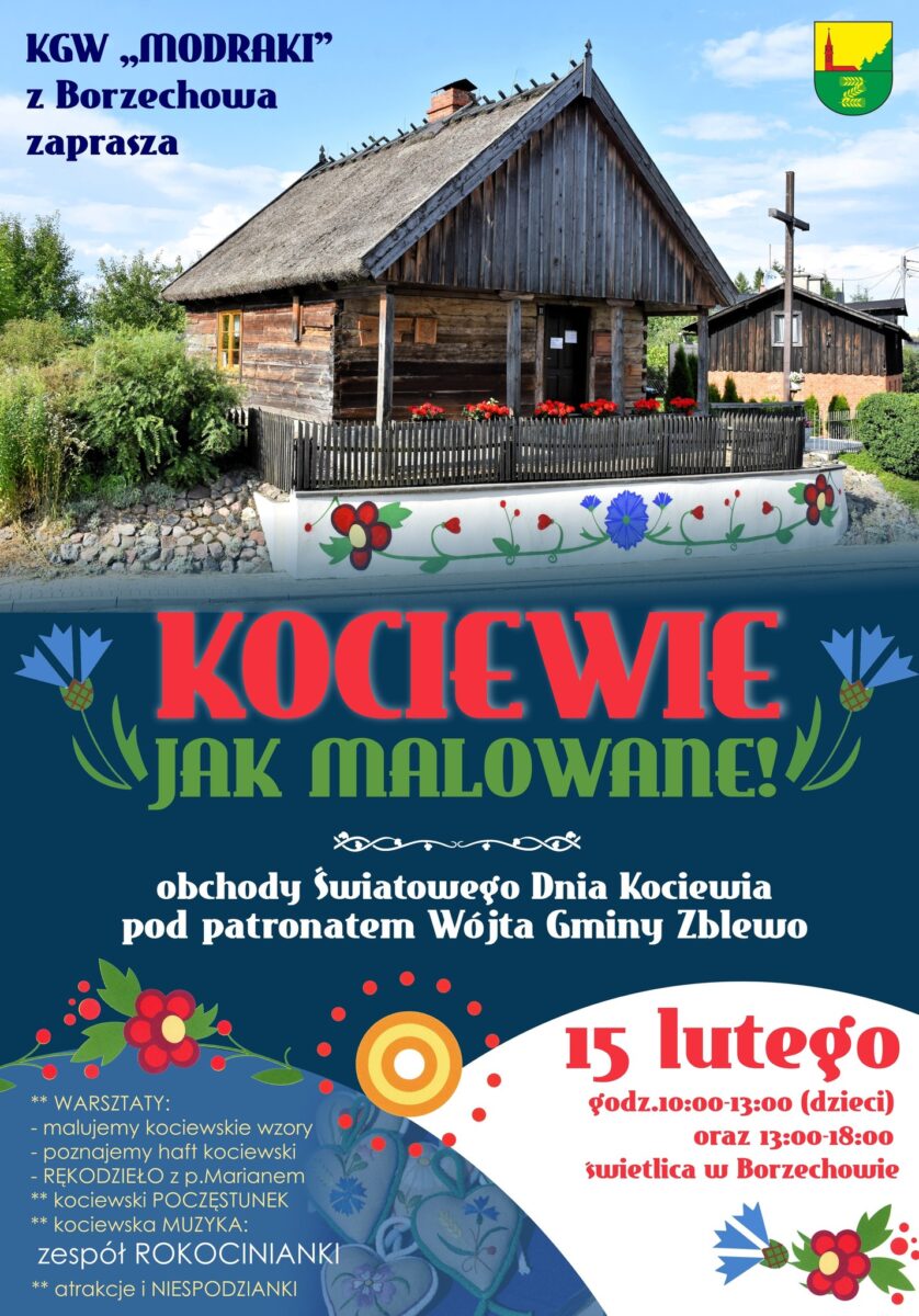 Zapraszamy na WIELKIE ŚWIĘTOWANIE! Światowy Dzień Kociewia już jutro – 10 lutego, a Gmina Zblewo Przystanek Kociewie wraz z KGW “Modraki” Borzechowo serdecznie zapraszają Was już w następny czwartek tj. 15 lutego w godzinach 10:00 – 13:00 i 13:00-18:00 do Borzechowa.