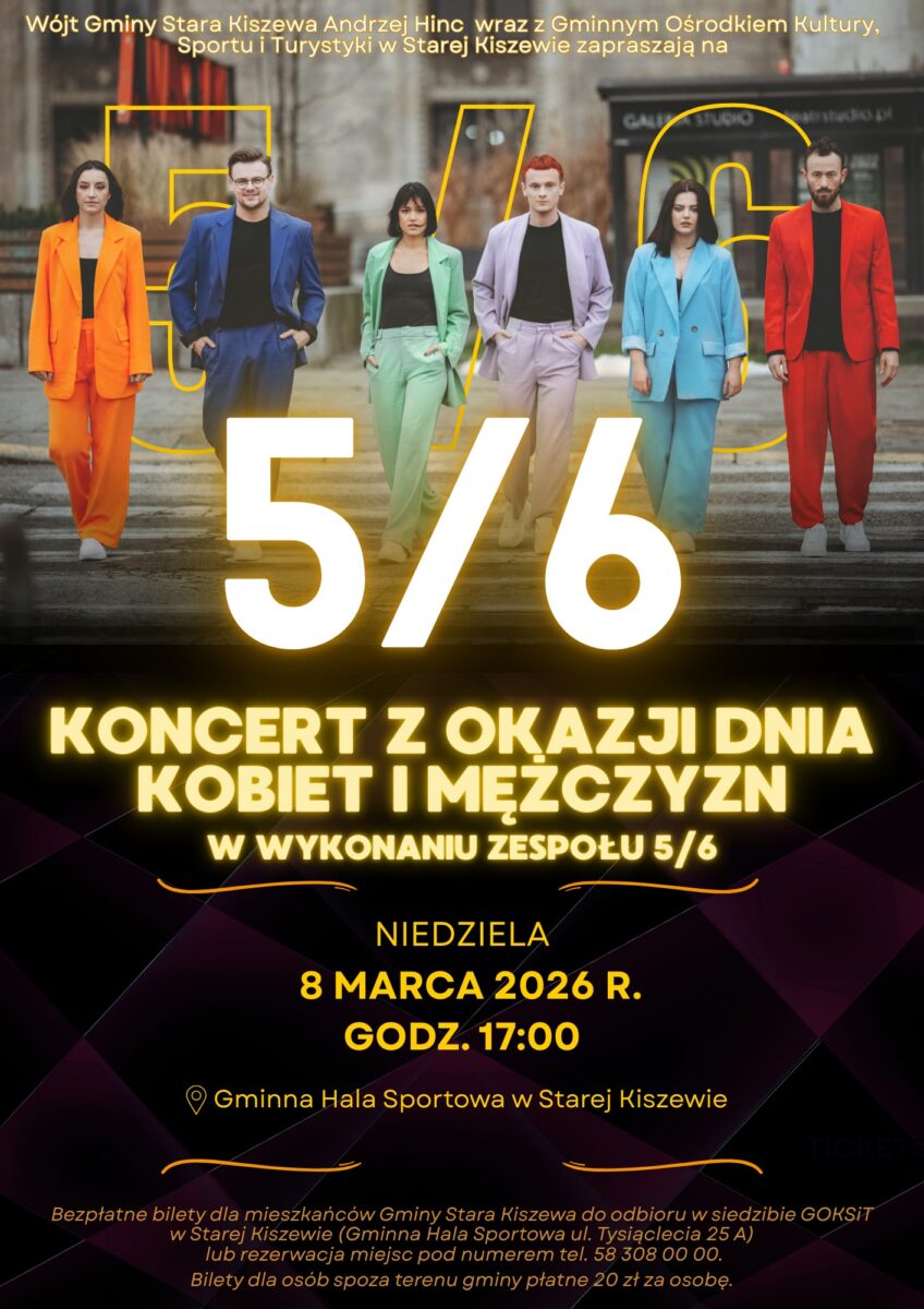 Wójt Gminy Stara Kiszewa wraz z Gminny Ośrodek Kultury, Sportu i Turystyki w Starej Kiszewie zapraszają na wyjątkowy koncert z okazji Dnia Kobiet i Mężczyzn!