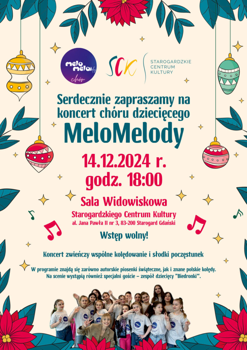 Zapraszamy na wyjątkowy koncert chóru dziecięco-młodzieżowego „MeloMelody”, który wprowadzi nas w magiczny nastrój Świąt Bożego Narodzenia.