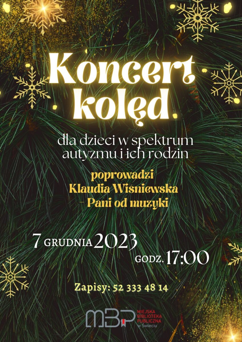 Przybieżeli do… Biblioteki! A kiedy? 7 grudnia o godzinie 17:00. Zapraszamy dzieciaki w spektrum (wraz z rodzinami) na koncert kolęd, który poprowadzi Klaudia Wiśniewska – Pani od muzyki. Przybieżajcie