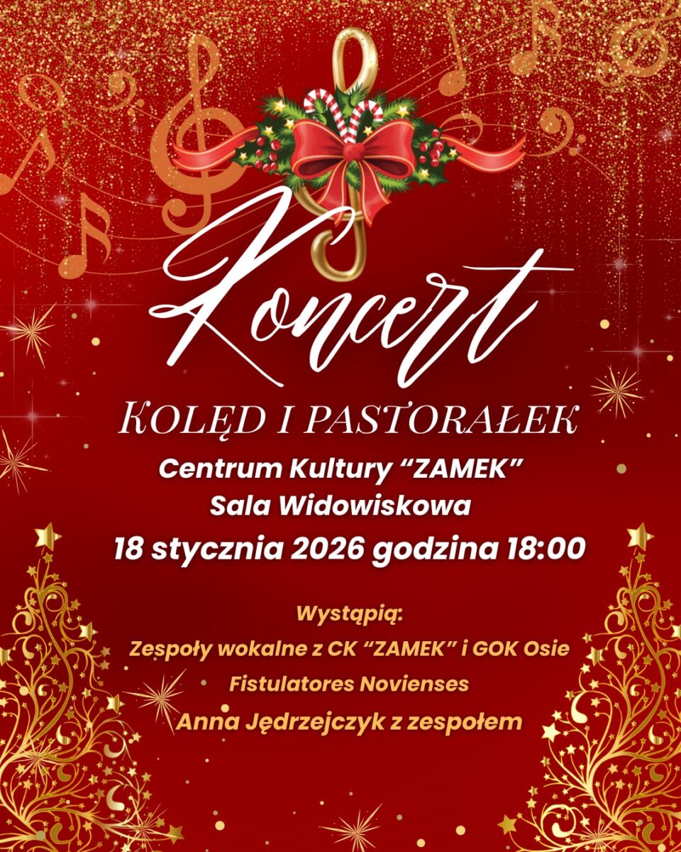 Zapraszamy na nastrojowy Koncert Kolęd i Pastorałek, który wypełni zimowy wieczór świąteczną muzyką, pięknymi głosami i wyjątkową atmosferą 🎄✨
