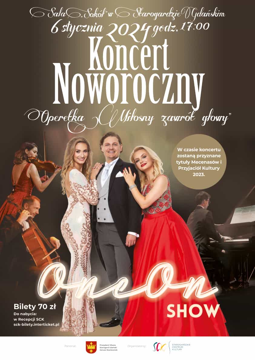 “Operetka – Miłosny zawrót głowy” grupy artystycznej OneOn to wspaniała zabawa w operetkowym rytmie wiedeńskiego walca, przy dźwiękach czarującego musicalu i ognistej piosenki. Piękne kreacje, porywające melodie, wspaniałe głosy, ciekawe słowo, a przede wszystkim pasja tworzą pełne uczuć, wspaniałe widowisko.