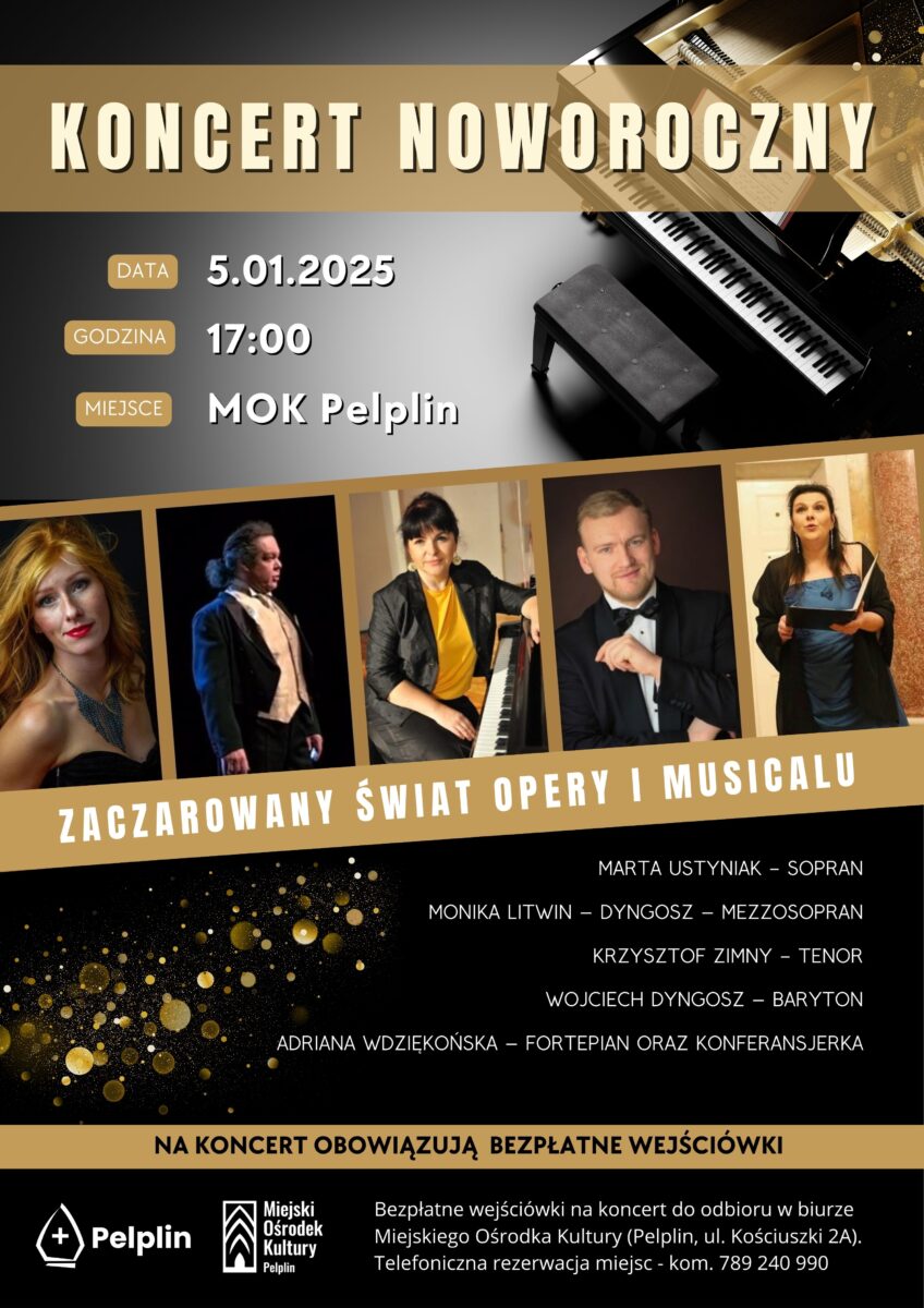 Burmistrz Miasta i Gminy Pelplin serdecznie zaprasza na wyjątkowy Koncert Noworoczny, który odbędzie się w zaczarowanej atmosferze operetki i musicalu.