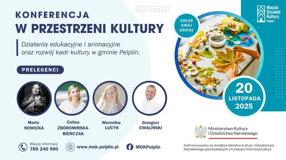 Wydarzenie odbędzie się w ramach projektu „W przestrzeni kultury – działania edukacyjne i animacyjne oraz rozwój kadr kultury w gminie Pelplin”, realizowanego przez Miejski Ośrodek Kultury w Pelplinie w latach 2025–2026 (program MKiDN Edukacja Kulturalna).