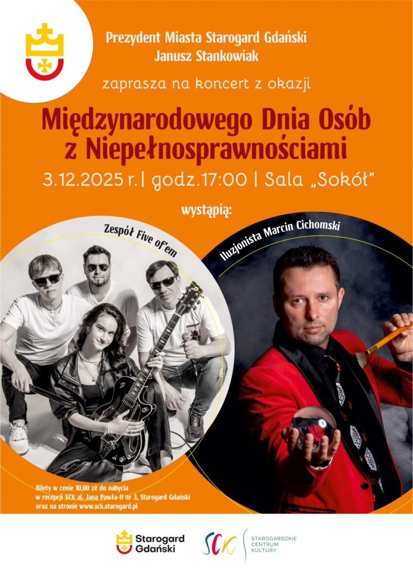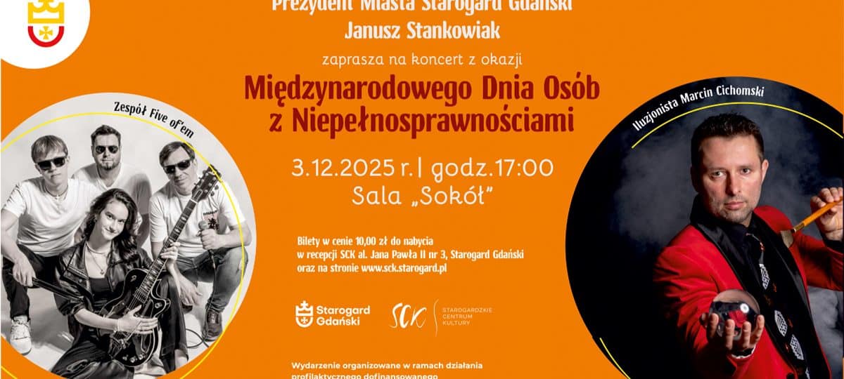 Prezydent Miasta Starogard Gdański oraz Starogardzkie Centrum Kultury zapraszają na wyjątkowe wydarzenie dedykowane osobom z niepełnosprawnościami, ich rodzinom, przyjaciołom i opiekunom. To spotkanie pełne magii, emocji i muzyki, które promuje integrację i wzajemne wsparcie.