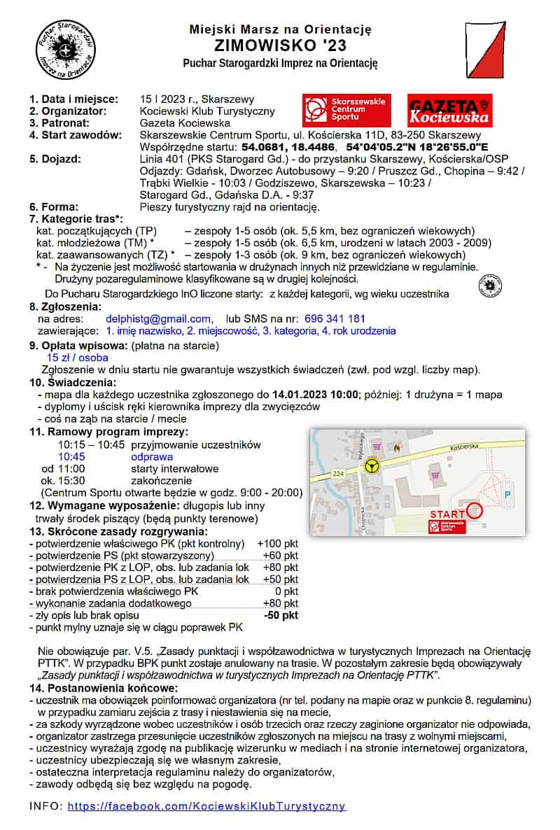 W najbliższą niedzielę, 15 stycznia zapraszamy na Miejski Marsz na Orientację ZIMOWISKO ’23!