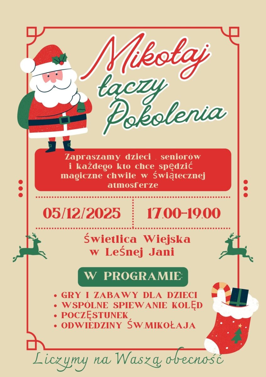 Rodzinne, pełne ciepła wydarzenie, podczas którego spotkają się najmłodsi, seniorzy i… sam Mikołaj! Idealna okazja, by poczuć świąteczną atmosferę i spędzić czas razem.