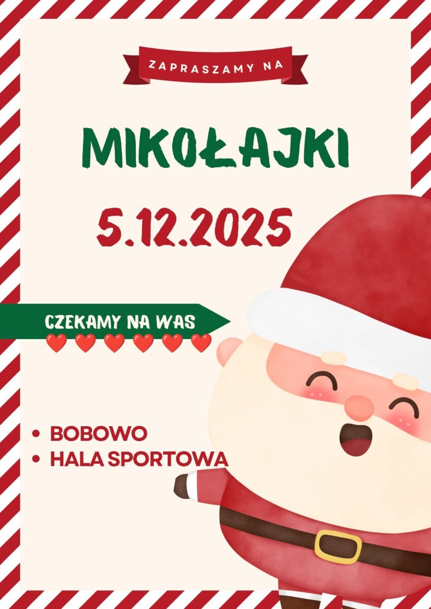 Serdecznie zapraszamy wszystkie dzieci wraz z opiekunami na Mikołajki, które odbędą się 5 grudnia 2025 r. (piątek) w Hali Sportowej przy ul. Gimnazjalnej 20.