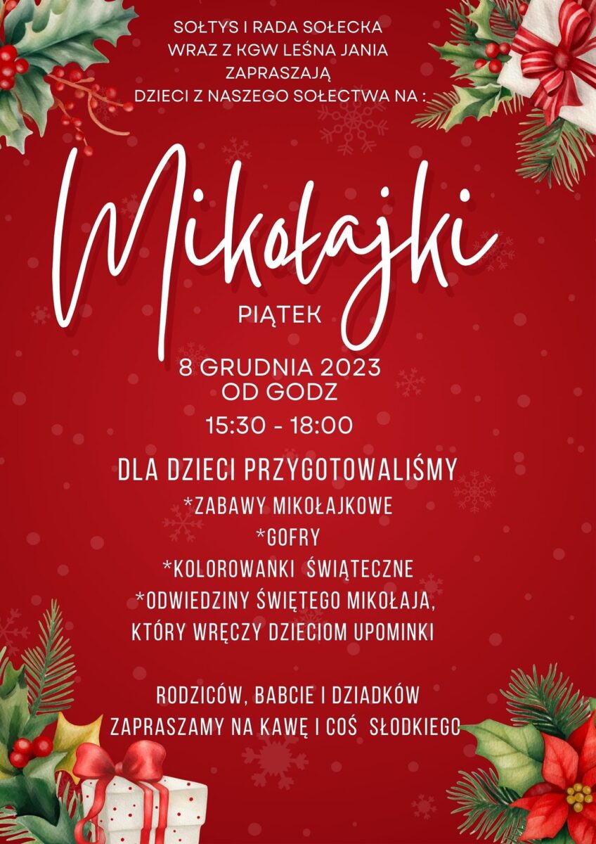 Zapraszamy na Spotkanie Mikołajkowe dzieci z Naszego Sołectwa ![]()
