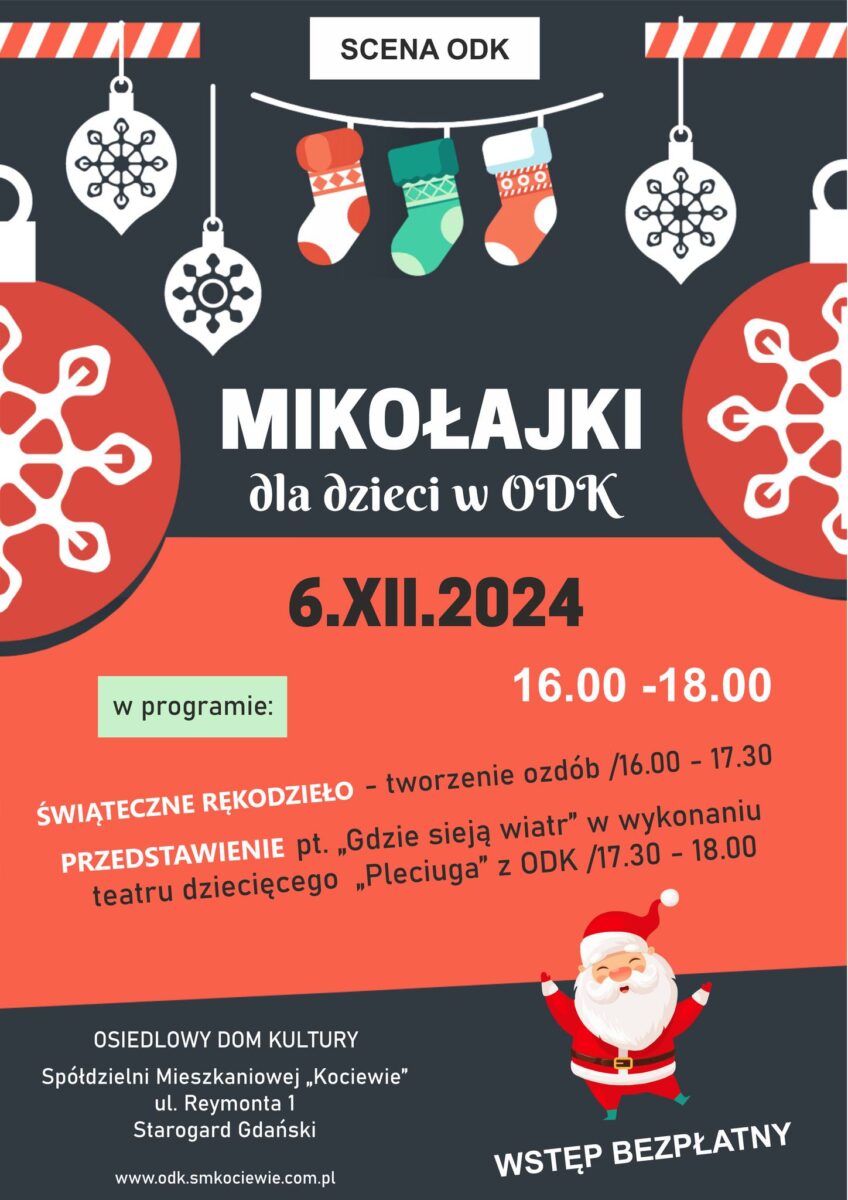Zapraszamy Was serdecznie na wyjątkowe Mikołajkowe wydarzenie organizowane przez ODK już 6 grudnia 2024 r.