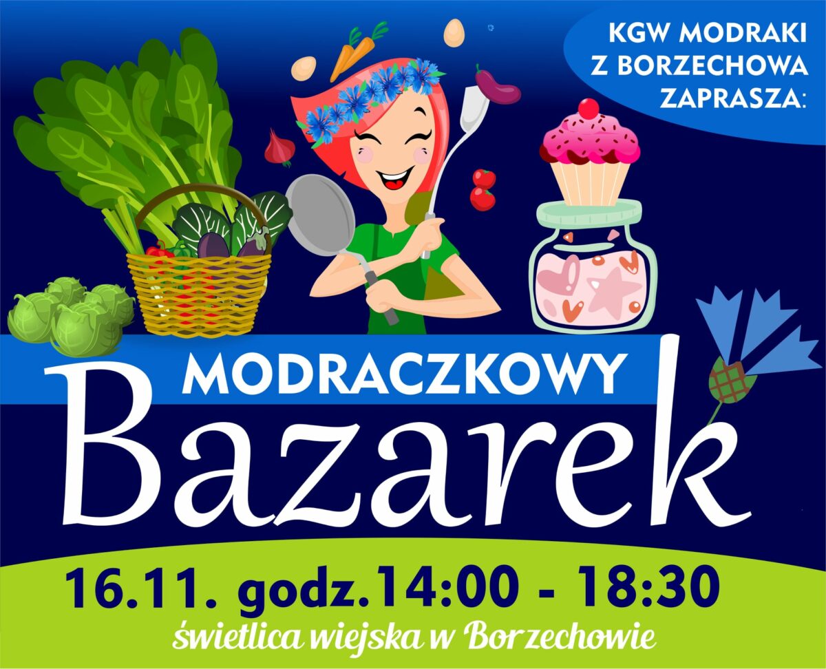 Jak w każdy wtorek, Koło Gospodyń Wiejskich “MODRAKI” z Borzechowa zaprasza na kolejny “Modraczkowy Bazarek”. Można tu zakupić swojskie pyszności przygotowane przez Gospodynie.