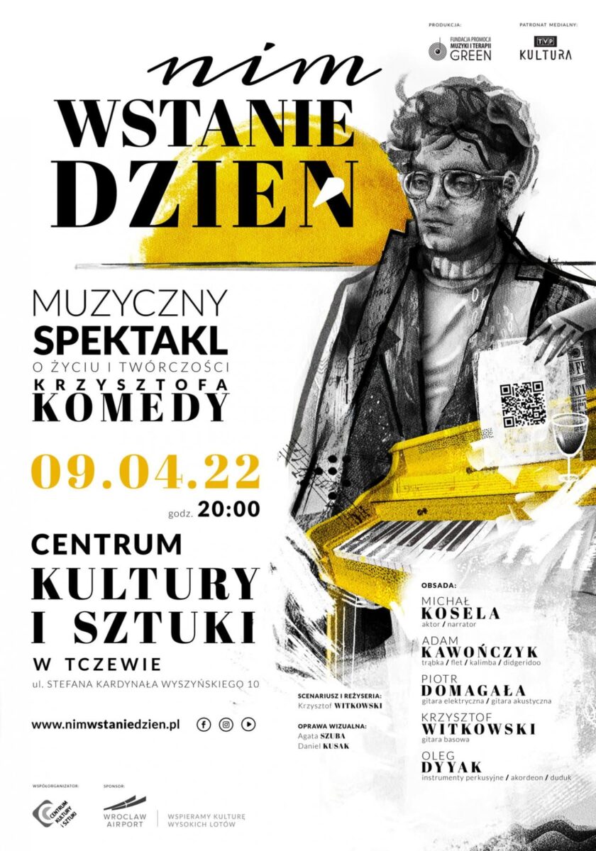 Już w sobotę 9 kwietnia mieszkańcy Tczewa będą mieli kolejną okazję doznać przyjemności z uczestnictwa w wyjątkowym i jedynym w swym rodzaju spektaklu o życiu i twórczości Krzysztofa Komedy.