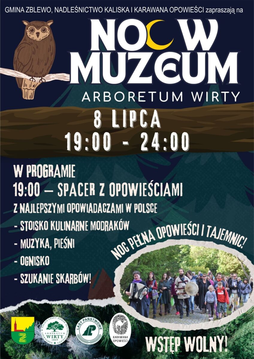 „Noc w Muzeum” to wspólna inicjatywa Gminy Zblewo, Nadleśnictwa Kaliska i Karawany Opowieści. Gorąco Was zapraszamy. Już nie możemy się doczekać!