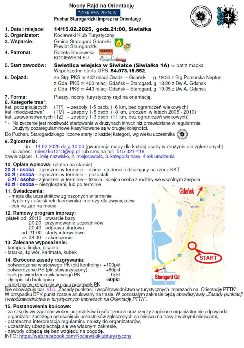 W piątek wieczorem, 14 lutego zapraszamy do Siwiałki na Nocny Marsz na Orientację ZIMOWA PEŁNIA’25 🌳🌳🗺🌳🌳
