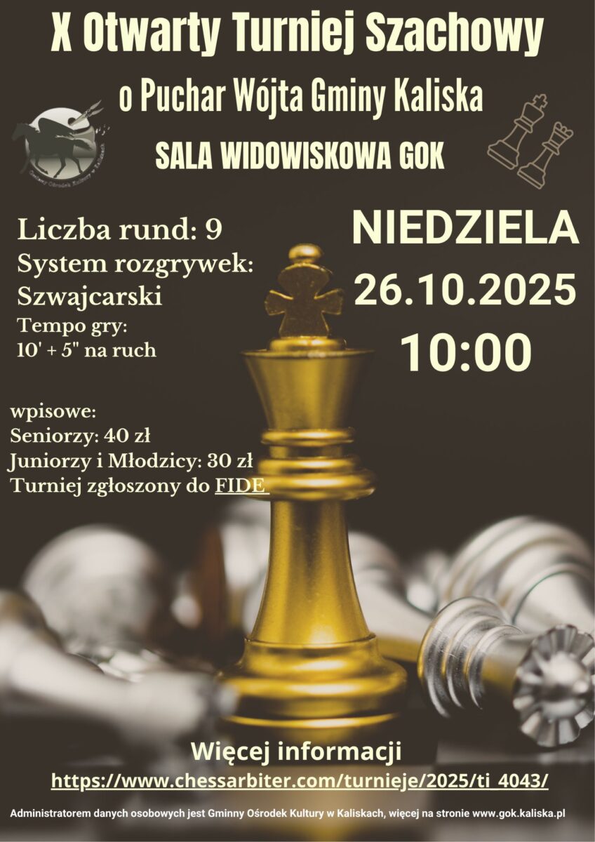 Przed nami jubileuszowa, dziesiąta edycja Otwartego Turnieju Szachowego o Puchar Wójta Gminy Kaliska.