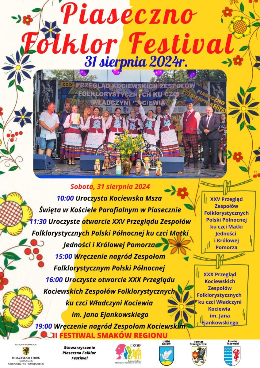 Serdecznie zapraszamy na wyjątkowe wydarzenie – Piaseczno Folklor Festival! To już XXIX edycja tego barwnego przeglądu, gdzie będziemy celebrować piękno polskiej tradycji, muzyki i tańca.