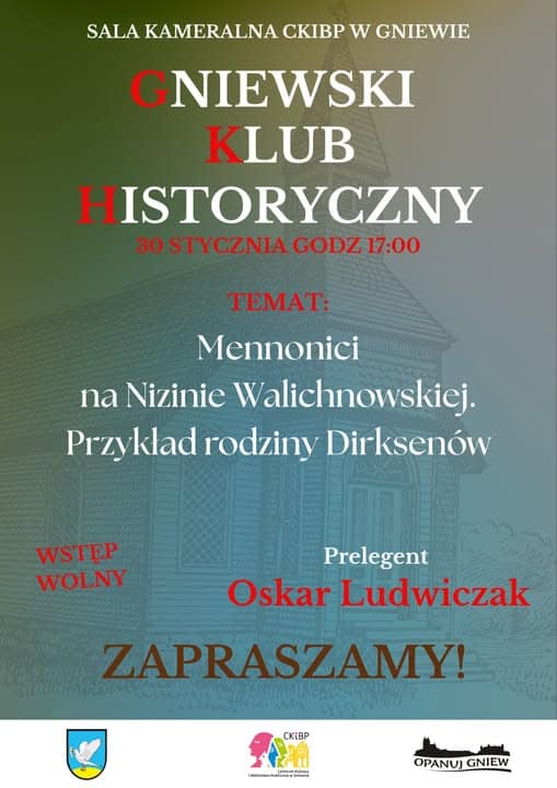Prelekcja przybliży historię mennonitów osiedlających się na Nizinie Walichnowskiej oraz losy jednej z rodzin, które wpisały się w dzieje tego obszaru.