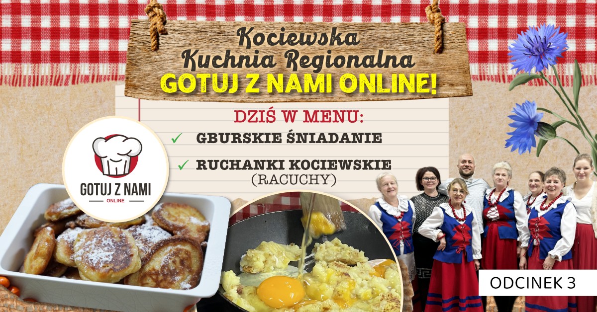 Zapraszamy do obejrzenia trzeciego odcinka serii Kociewska Kuchnia Regionalna – Gotuj z nami online. Grzegorz Kochański wspólnie z paniami z koła gospodyń wiejskich w Osiecznej zaprosi nas do świata potraw regionalnych Kociewia. W tym odcinku dowiemy się jak przygotować Gburskie śniadanie oraz Ruchanki kociewskie. 🍲🥔