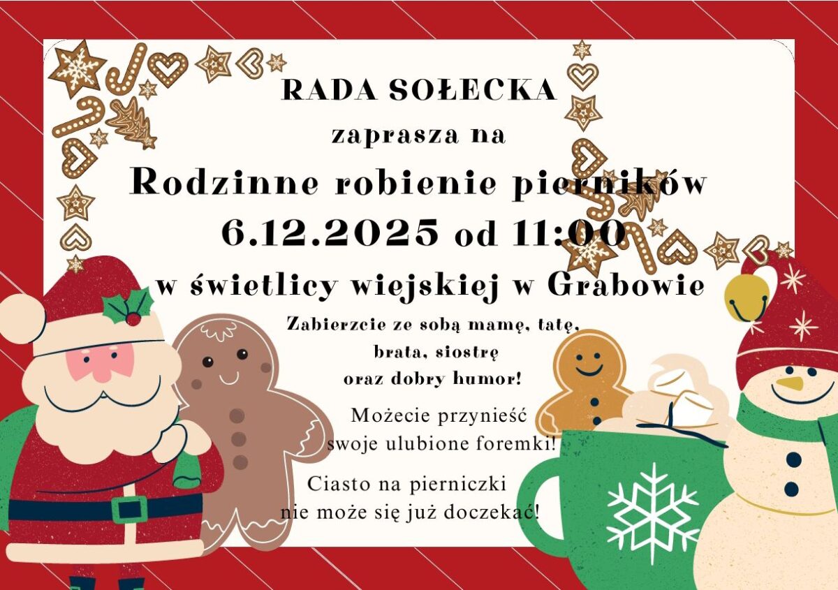 Rada Sołecka zaprasza wszystkich mieszkańców — małych i dużych — na wspólne, rodzinne dekorowanie i pieczenie pierniczków!